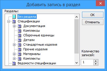 Используя данный диалог, вы можете ввести необходимое количество записей в любой раздел вручную или отказаться от этого, нажав кнопку [Отменить].
