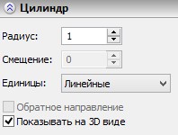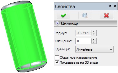 После выбора исходного 3D объекта система самостоятельно определит, рабочая поверхность какого типа будет создана. В окне свойств команды появится диалог для задания параметров данной рабочей поверхности. В зависимости от типа создаваемой рабочей поверхности в окне свойств можно задать значения одного или двух смещений. Смещения определяют разницу между радиусом исходной геометрической поверхности и радиусом создаваемой рабочей поверхности.