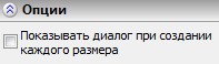 При вызове команды создания размера в окне свойств в разделе "Опции" содержится вспомогательный параметр – "Показывать диалог параметров при создании каждого размера". Если данный параметр включен, в команде создания размера после задания положения размера на чертеже на экране будет автоматически появляться окно диалога параметров размера (опция