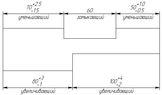Пусть есть размерная цепь, в которой необходимо рассчитать поле допуска для замыкающего размера.