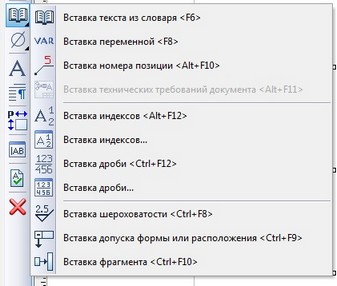 позволяют вставлять в выражение редактируемой переменной текст из словаря, индексы, дроби и специальные символы. Обе опции содержат списки вложенных пиктограмм. В автоменю может отображаться любая из них. Обычно это пиктограмма той опции, которая вызывалась последней.