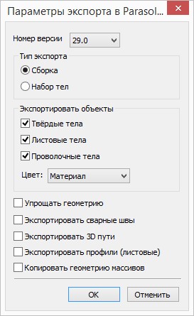 При экспорте в формат Parasolid необходимо указать номер версии Parasolid.