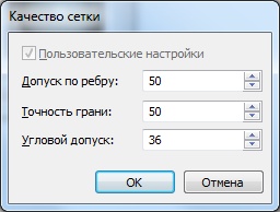 ●Качество. Параметр, позволяющий задавать степень разбиения модели на сетку треугольных плоских граней при выводе изображения в 3D окне. Из выпадающего списка можно выбрать предопределённые наборы параметров, задающие качество сетки: Очень грубое; Грубое; Пониженное; [Стандартное]; Повышенное; Высокое; Очень высокое; [Стандартное] – значения параметров разбиения модели берутся из команды “ST: Параметры документа” (параметр “Качество сетки” на закладке “3D”); Исходная операция – значения параметров разбиения модели берутся из параметровоперации, родительской по отношению к операции, указанной в данном диалоге параметров; Пользователя – значения параметров разбиения модели определяются пользователем. Дополнительная кнопка […] вызывает окно диалога для задания пользовательских значений параметров разбиения модели (в единицах модели). В диалоге параметров сетки можно задать свои значения: допуска по ребру, точности грани и углового допуска. |