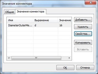 Обратите внимание, что для полноценного использования коннекторов необходимо при создании фрагмента гайки указать в свойствах переменной, отвечающей за диаметр гайки, значение коннектора с именем “DiameterOuterMetricThread”.