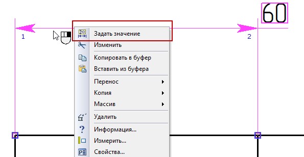 Кроме того, данная команда доступна в контекстном меню при выборе 2D или 3D размера.