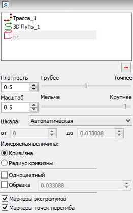 Есть два измеряемых параметра: Кривизна и Радиус кривизны. В зависимости от выбранного параметра изображение в 3D окне будет выглядеть по-разному.