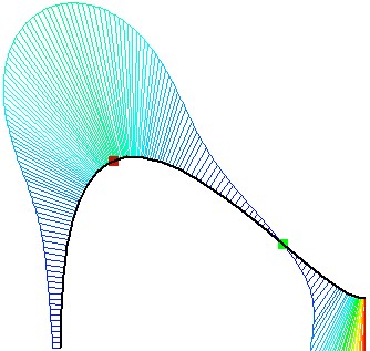 в точке под курсором будет измерена кривизна и радиус кривизны. Значение радиуса кривизны будет в метрах, кривизна – величина обратная от радиуса кривизны в метрах.