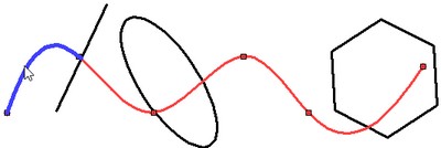 При вызове данной опции на сплайне (как и на любой другой линии) появится динамически перемещаемая точка. Нажатием