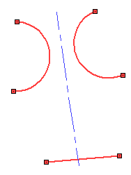 Последовательно выберите два отрезка. Появится предварительное изображение осевой линии, находящейся посередине между выбранными отрезками. В качестве пределов осевой линии на данном этапе используются перпендикуляры, опущенные из конечных точек выбранных линий изображения на осевую линию. Если выбранные линии не параллельны друг другу, то возможны два варианта создания оси между ними. Выбор используемого варианта зависит от того, с какой стороны от точки пересечения линий располагается курсор при выборе второй линии.