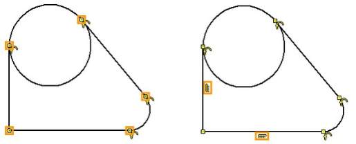 •Зелёный – чертёж полностью определён, т.е. не имеет степеней свободы.