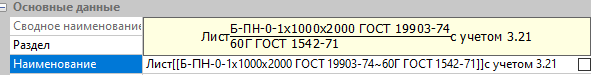 Если имя материала задано с учётом сортамента, то используется не одна переменная, а четыре (по одной для каждого поля в диалоге задания сортамента):