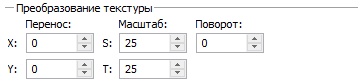 Данная группа параметров служит для настройки внешнего вида текстуры, перемещения текстуры, изменения её масштаба и поворота.