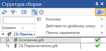 Раскрывает выпадающее меню, которое содержит различные команды для работы со структурой сборки (подробнее см. ниже).