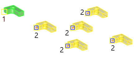 1 - Вершина исходного тела, выбранная в качестве базовой 3D точки 2 - 3D Узлы, по которым заданы целевые 3D точки |