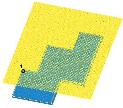 Массив-образец до применения ограничений. Красным выделен контур ограничивающей грани. 1 - Исходный объект массива-образца. |