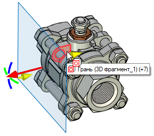 Также в режиме редактирования активен фильтр выбора граней на панели фильтров. После выбора грани в 3D сцене плоскость обрезки будет совмещена с ней (если грань плоская) или расположена по касательной к ней в произвольной точке (если грань криволинейная).