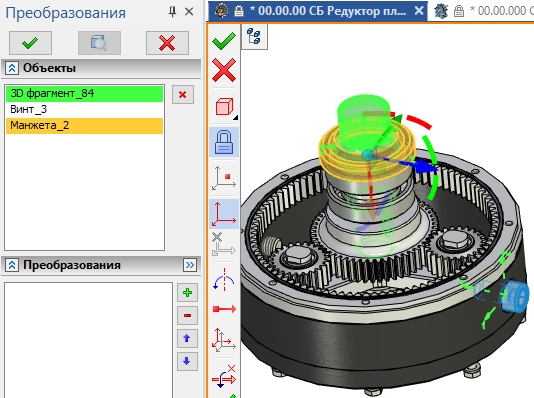 Режим задания преобразований для выбранных объектов в общей системе координат |