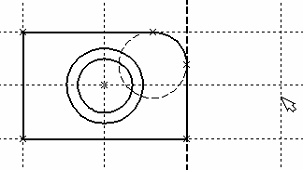 Вторую окружность конического отверстия можно построить как концентрическую к первой. Для этого нажмите на пиктограмму в автоменю или на клавишу <О>. Затем укажите с помощью