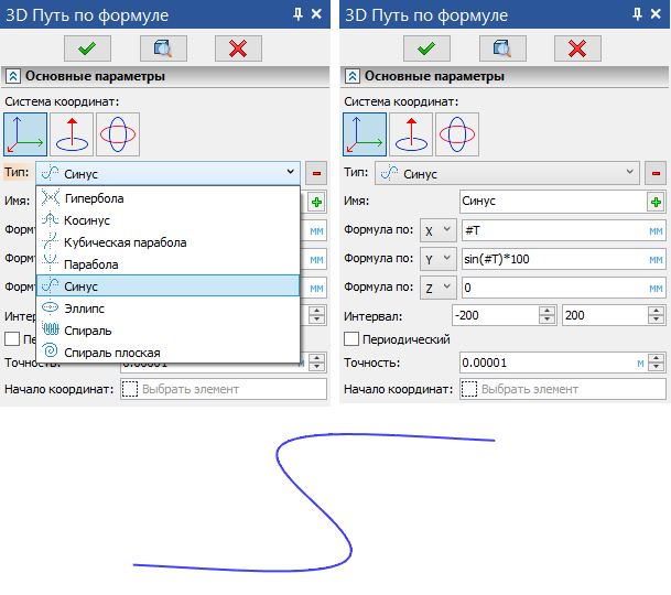 Данная команда позволяет построить 3D путь по формуле в заданной системе координат.