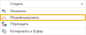 Команда модификации пути может быть вызвана выбором пункта Модифицировать в контекстном меню пути: