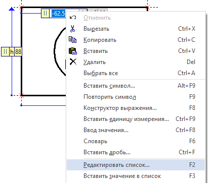 на самой метке Отношения или в автоменю. Если параметр, описываемый Отношением, связан с выражением или с переменной, то метка Отношения отображает как выражение, так и его текущее значение. Пользователь может отредактировать само выражение так же, как и его значение.