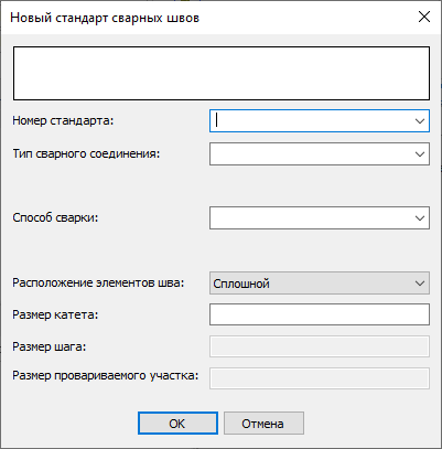 При необходимости пользователь может создать новый стандарт шва по ГОСТ, ОСТ или СТП. Для этого в выпадающем списке параметра Номер следует выбрать пункт Добавить….