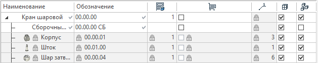Для сборочных документов состав изделия автоматически заполняется на основе данных составных частей сборки.