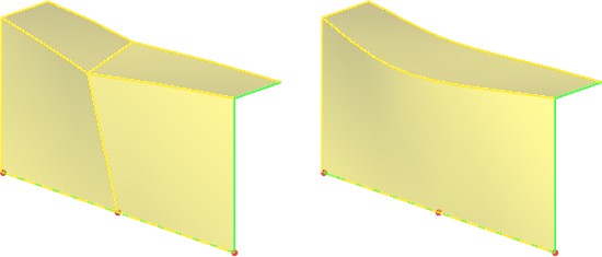 ·Влияние. Параметр выбора варианта сопряжения участков поверхности в промежуточных контрольных точках – дискретно либо гладко.